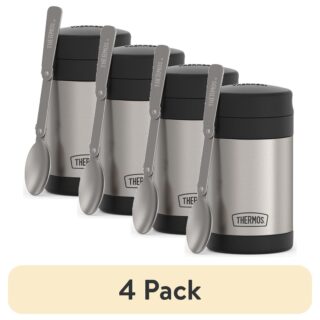 (4 pack) Thermos 16oz Insulated Food Jar with Folding Spoon, Stainless Steel