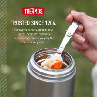 • Pack a delicious lunch with this Thermos 10oz Vacuum Insulated Stainless Steel Food Jar. This unbreakable container keeps foods hot for up to seven hours and cold foods cold for up to nine hours. With a stainless steel interior and exterior, this vacuum-insulated food jar ensures long-lasting performance. The exterior stays cool to the touch and does not sweat, which allows you to safely pack it with your other food items. It has an extra-wide mouth that makes it easy to fill, eat from and clean. Use it to pack hot meals, such as soup, pasta, stew, stir fry and casseroles or cold meals like salads, vegetables, hummus and dips. The durable construction and insulated design allows you to enjoy your food at the right temperature, even on the go. This Thermos food jar is conveniently compact to make it easy for travel.