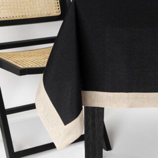 • The Thyme & Table Black with Gold Border 84″ Tablecloth adds a stylish and functional touch to your dining experience. Crafted from high-quality fabric, this tablecloth is perfect for protecting your table while enhancing your decor. With a rectangular shape that comfortably seats 8-10 people, it is ideal for both casual meals and formal gatherings.