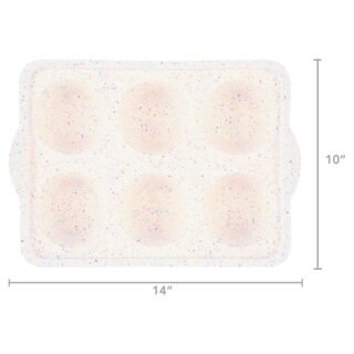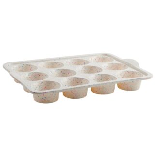 • ThisTrudeau Silicone 12 Count Muffin or Cupcake Pan is so easy to use, all you need to do is butter or grease it, bake it, and pop it out! The multicolor confetti pan is constructed of silicone which offers great non-stick properties for an easy release and perfect browning every time. The pan also features a reinforced steel frame for secure handling in and out of the oven without drooping. No need to put it on a cookie sheet! This practical pan is oven safe up to 428F, microwave safe and freezer safe. Once you’re done, it’s so easy to clean, just pop it in the dishwasher!
