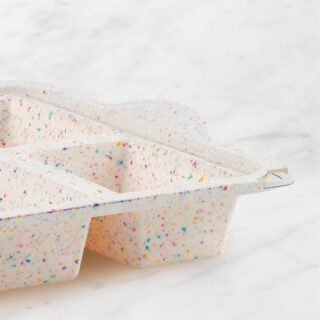 • Our Structure Silicone TM Confetti pans are so pretty that they will open your appetite even before you start cooking! Create amazing desserts with this Jumbo Muffin Pan! All you need to do is prep it, bake it and pop it out! Start baking worry-free : the pan is heat resistant up to 428F (220C)! Part of our original Trudeau design baking tools, it features reinforced steel rims for secure handling. Baking recipes for the kids is always better with a non-stick and flexible tool which releases evenly cooked goodies every time. Discover perfection, right out of the oven! This handy square cake pan is also microwave and freezer safe, whether you’d like to enjoy your treats now or later. Once you’re done, just pop it in the dishwasher!