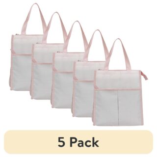 (5 pack) Mainstays Reusable Polyester Adult Lunch Bag, Pink