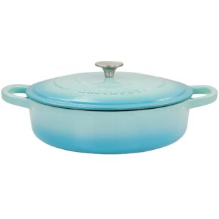 • Slow simmer a flavorful stew or bake up a new creation with the versatile Crock-Pot Artisan 5 Quart Braiser Pan with lid. Made of quality cast iron with a beautiful and durable enameled finish, it looks great in the kitchen or on the table. The Artisan series is an updated American classic that every home needs. Cook delicious meals with this versatile braiser which distributes and retains heat evenly. Effortlessly take it from the stove-top to the oven with the wide side handles.