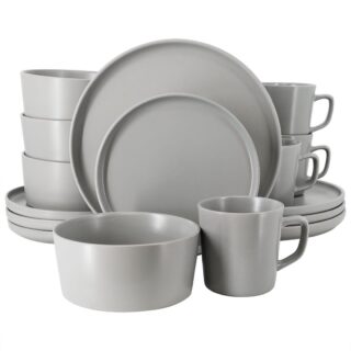 $50.38Add to cartThe Elama Luxmatte Light Grey 16 Piece Dinnerware Set brings style to the table for family and guest to adore. The minimalist design perfectly accents any meal, be it a basic breakfast or a lavish luncheon. Made from a stoneware construction, the set features top quality presentation and durability. Dishwasher safe for easy cleaning and microwave safe for fast heating. This place setting is suitable for any situation be it for casual hangouts or special celebrations. Item Dimensions: 14.00″ x 13.00″ x 11.75″ Item Weight: 27.00lbs