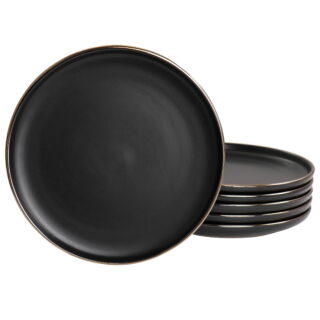 Elama Paul 6 Piece Stoneware Salad Plate Set in Matt Black with Gold Rim