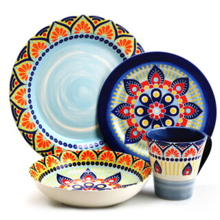 $43.99Add to cartThe Elama Zen Blue Mozaik 16 Piece Round Stoneware Dinnerware Set is a lovely addition of color to your table. Whether you choose to host a large party or enjoy an intimate meal in your home, these plates will brighten up your day with colorful and vibrant tones and intricate bohemian style. While this dish set for 4 is a wonderful way to serve many meals, it’s designed to be versatile and can easily double as serving ware. This stoneware collection is also both dishwasher and microwave safe making clean up and reheating simple and efficient.