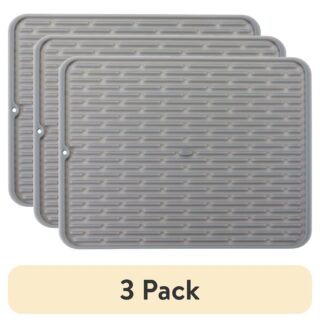 • Our Silicone Drying Mats feature a unique rib design that aerates and elevates items, keeping them clean and sanitary. Mat can be rolled up or hung for storage. Heat resistant up to 425F, so you can use as a trivet. Large enough to accommodate frying pans and platters. Made of food-safe silicone. Flexible silicone Mat can be rolled up or hung for storage. Product Dimensions 16.875 in x 12.5 in x 0.25 in