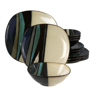 • Elevate your dining experience with this Hometrends Althea 12 Piece Soft Square Stoneware Dinnerware Set. The sturdy stoneware construction is dishwasher and microwave safe for convenient everyday use. With a gorgeous contemporary design in colors of tan, teal, and black, this set looks beautiful in any house with any decor. Including four of each dinner plates, salad plates, and bowls, you’ll be ready for all occasions. Serve delicious meals to your family and guests on these lovely modern dishes today!