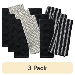 (3 pack) Thyme & Table Kitchen Towels, Black and Gold Crosshatch, 4 Pack Set