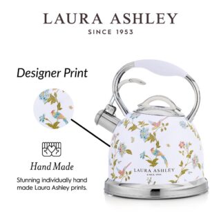 Laura Ashley Compatible Stovetop Kettle, Stainless Steel Elveden White, 8.46 x 8.46 x 10.23 inches