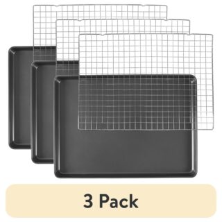 $50.95Add to cartBake great tasting cookies with the Wilton Premium Bakeware Set Non-Stick Mega Cookie Sheet 21×15 & Cooling Rack for Cooking & Baking. Designed specifically for bakers and decorators, this cold-rolled steel baking pan combines quality with everyday performance & is designed for durability. This quality cookie sheet baking pan resists warping and promotes even heat distribution while baking, making it the baking tray that will last for years. The premium non-stick coating ensures effortless release of baked goods, so cookies slide right out and clean-up is easy. No more scrubbing and sticking – just enjoy perfectly baked cookies and baked desserts with minimal effort. Plus, handles provide a secure grip for effortlessly placing or removing desserts or meals from the oven. Scratch resistant, & oven safe up to 450 degrees Fahrenheit. Pan size is 21 inches in length by 15 inches in width. Cooling grid rack size is 14.5 inches in width x 20 inches in length. The cooling grid is not oven safe. Great for holidays celebrations, anniversaries, family dinners, birthdays, or other large gatherings. Some foods may stain the metal, but it will not affect the performance. Cookie sheet is dishwasher safe. . Cookie sheet includes a 10-Year Limited Warranty. For terms & conditions, please visit Wilton.com. At Wilton, we are champions of adding sparkle and fun to any occasion. From an extensive array of baking and decorating products to skill-building classes, it’s our treat to help you create sweeter moments.