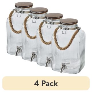 (4 pack) Better Homes & Gardens Glass 2 Gallon Ribbed Beverage Dispenser with Acacia Wooden Lid
