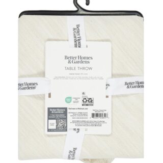 • Create a classic look for your table with the Better Homes and Gardens Beige Fringe Table Throw. The subtle striping of this 50×50 tablecloth gives a cozy, casual feel to the space. Versatile coloring also ensures you can dress it up to feel more formal, decorating with confidence for every occasion. No need to worry about spills and stains with this machine washable design. Both family and party friendly, the Beige Fringe Table Throw by Better Homes and Gardens is the perfect accent for any space.