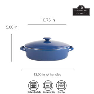 $32.73Add to cartPrep, cook, serve, and store all in one container! This set of 2 covered casserole dishes is made of durable stoneware that is microwave, oven, and dishwasher safe and will not absorb odors or flavors, making them a must-have for every kitchen. Featuring a two-tone color scheme and knobbed lids, you’ll love baking your favorite dishes and serving your guests with this great bakeware set from 10 Strawberry Street.