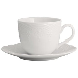 $56.78Add to cartGraceful and elegant, 10 Strawberry Street’s Valentina collection adds a subtle touch of sophistication. With an embossed pattern and beautifully scalloped edges, this cup and saucer set offers a 7 ounce cup and 6″ saucer. This cup and saucer set will bring back the charm of tea time and makes every occasion special. These Ten Strawberry Street set of 6 cup and saucers are microwave and dishwasher safe. Makes a beautiful gift for any occassion or gorgeous addition to your existing collections.