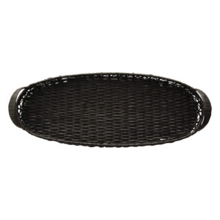 Creative Co-Op Decorative Hand-Woven Rattan Tray with Handles, Black