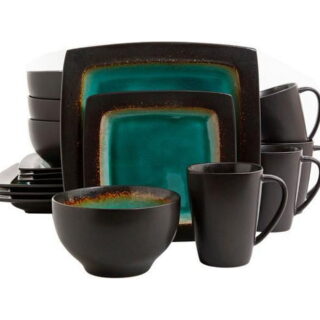 $49.69Add to cartAnother of Gibson’s unique reactive glaze finishes, Ocean Paradise features a beautiful crackle surface in rich Jade. This elegant square silhouette dinnerware makes a wonderful tabletop style statement. (4) 10.5in Dinner Plate(4) 8in Dessert Plate(4) 5.75in Bowl(4) 14oz Mug.