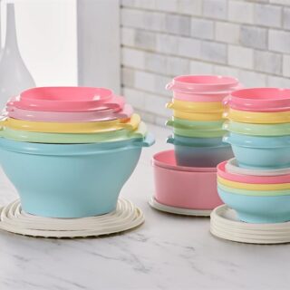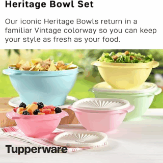 $42.58Add to cartSomething this classic never goes out of style. The Tupperware Heritage Bowl Set transports Tupperware’s time-tested design into the modern kitchen, making it a go-to for every home and kitchen. These versatile plastic bowls with tight-sealing leakproof container lids offer secure storage for everything from snacks to salads to desserts like cookies, cupcakes, or even leftover cake. The nestable design maximizes your kitchen storage, while the tapered handles and iconic sunburst lids make carrying and sealing effortless. Whether you’re mixing a recipe, storing leftovers, or bringing food to a party, picnic, or potluck, this durable, dishwasher-safe set serves up reliability and style. Pair it with other Tupperware containers, meal prep containers, or food-safe carriers to round out your collection of trusted kitchen must haves.