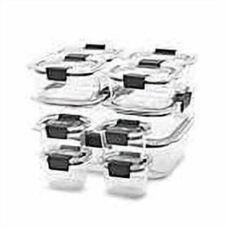 $37.95Add to cartRubbermaid Brilliance food storage containers are built with secure latches on each piece, so you can transport your favorite foods mess-freeeven soups, stews, and sauces. These 100% leakproof, crystal-clear, durable Tritan plastic lids and bases make it easy to see whats inside, plus the containers are stain- and odor-resistant, so they stay looking like new. Brilliance food storage containers have built-in vents that allow steam to escape so you can conveniently microwave food without removing the lid. They stack neatly in the fridge and cabinets and are microwave-safe, dishwasher-safe on top-rack, oven-safe, freezer-safe. Set includes four 0.5-cup containers, four 1.3-cup containers, two 3.2-cup containers, and one 9.6-cup container with lids.