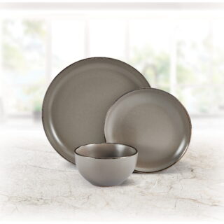 $36.81Add to cartThis Pfaltzgraff 12-Piece Hadlee Dinnerware Set ensures you always have the basics on hand for everyday dining. Crafted from high-quality bone china for long-lasting durability, these pieces in classic gray that complements any flatware or stemware. 12-piece set, service for 4, includes 4 each of: 10-1/2 inch dinner plate, 8-inch pasta bowl, and 6-inch all-purpose bowl. Microwave and dishwasher safe.