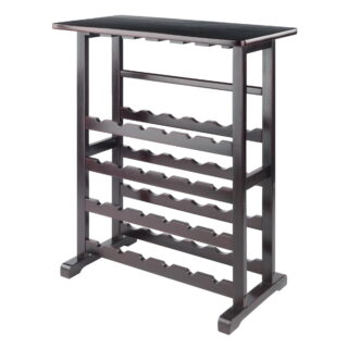 $33.17Add to cartThe Winsome Wood Vinny 24-Bottle Wine Rack lets you store your favorite wine bottles as well as other spirits, a perfect addition to any home. A great piece for your dining or living room area. With space for 24 bottles of wine, you can have one or more of your favorite varieties on hand to serve during each meal or while entertaining family and guests. This rack has 6 slots to accommodate 0.75L wine bottles on each rack with a weight capacity of 25lbs per rack. There are six rows of glassware holders, allowing you to hang 18-24 wine glasses depending on the diameter. The top has a surface of 31.5in W x 16.22in D, great for displaying or can be used as a serving table. Constructed of solid wood to provide durability and sturdiness for long lasting durability. Finished in a rich espresso, this design can fit in with most styles of home decor. Conveniently ships in 1 box and ready for assembly. Replacement parts can be requested directly to the manufacturer within 60 days from date of purchase. UNIT DIMENSIONS: 31.5in W x 16.22in D x 35.67in H