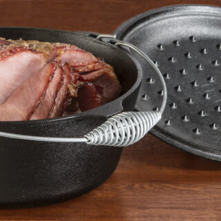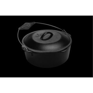 $76.91Add to cartEngage in a purely American tradition of cooking with the 9 Quart/8.5 Liter Cast Iron Dutch Oven with Bail Handle from Lodge Cast Iron. Lodge products have been produced in in the family’s Tennessee foundry since 1896 and the company guarantees top quality and the highest standards for each piece they produce. Regardless of whether you’re using the oven, stove, grill or campfire, this 9 Quart Dutch Oven is the perfect tool for searing, sauting, simmering, braising, baking, roasting, and frying. Lodge Cast Iron promises products that retain heat better than any competitor and the incredibly durable cast iron construction of this Dutch oven means you and your family will be enjoying it for years to come. Now Let’s Eat!