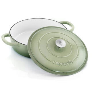 Crock Pot Artisan 5 Quart Round Enameled Cast Iron Braiser Pan with Self Basting Lid in Pistachio Green