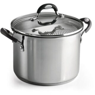 $32.73Add to cartThis 3-Piece, 6-Quart Tramontina Stockpot can be used with or without its locking strainer. The pot is made from stainless steel for a stylish look with durability and excellent heat conductivity. The tri-ply base layer produces consistent heating and is ideal for preparing pasta, vegetables, stock, sauces and more. The stainless-steel stockpot comes with a glass lid so you can easily check on your cooking progress. It also has ergonomically designed handles with a soft grip. These are riveted onto the pot for extra strength. The Lock-N-Drain covered stockpot features a stainless-steel strainer that can be locked onto the cooking pot to drain water from pasta or vegetables. It is attractive, versatile and functional, so you can enjoy using it with or without the unique strainer. This 3-Piece 6-Quart Tramontina Stockpot is ideal for the serious cook or homemaker.