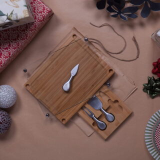 • Striking modern design and multi-level function merges with the Concerto Glass Top Cheese Board and Knife Set. A removable glass serving tray tops an eco-friendly and durable bamboo wood cutting board with pull-out drawer containing three stainless steel cheese tools. Choose from a crumbly cheese chisel, a pointed-top cheese knife, and a cheese fork for all your charcuterie board needs. With double the cutting and serving space and the integrated cheese tool storage, this cheese board and knife set is a must-have for travel and picnics as well as for convenient at-home entertaining. Choose this multi-functional, fully loaded cheese and meat board set for a Mother’s Day, Father’s Day, Housewarming, or Holiday Entertaining gift. This wood cutting board is also particularly noted as a treat yo self gift, so…dont hold back – youve earned every aspect of this multi-use cheese and charcuterie board wonder!