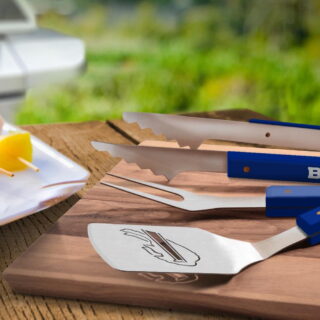 $42.59Add to cartGet your grill game on with an officially licensed set of barbecue tools. The barbecue tool set includes a Sportula, a pair of tongs and a grill fork. Each tool is made from heavy-duty stainless steel with brass-riveted hard maple handles. The logo is stamped on the hard maple handles and the logo is laser cut through the blade of the Sportula. The Sportula and the fork both come with an integrated bottle opener. An unforgettable gift for any fan and the most noticed accessory at any tailgating event.