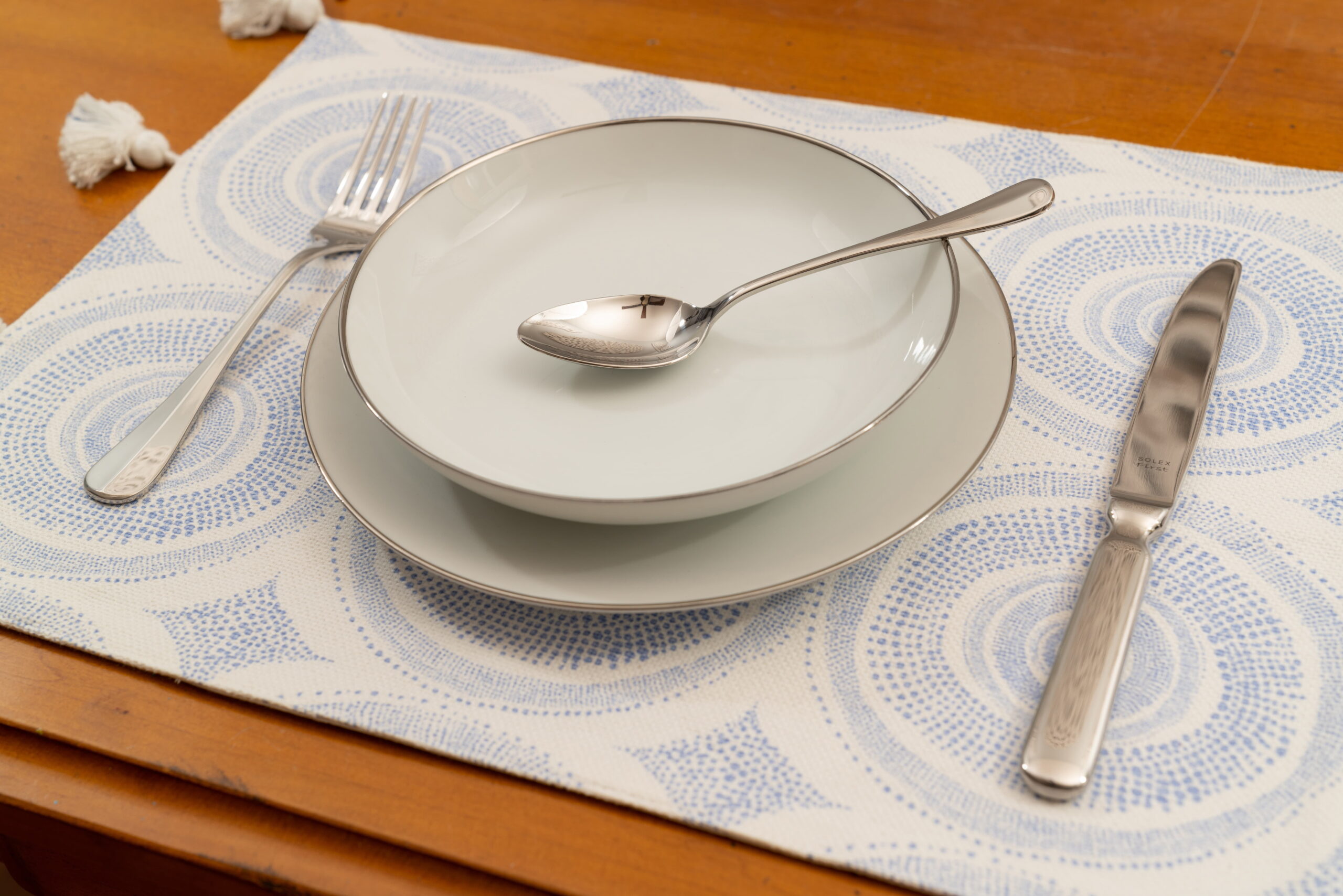 Featuring a classic coupe shape with a gentle contour and silver lined rim, this collection is made of high-fired porcelain and would be a beautiful addition to everyday meals or formal events alike.
