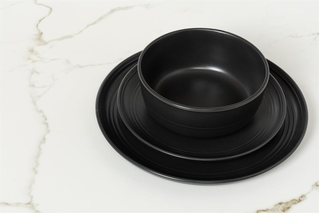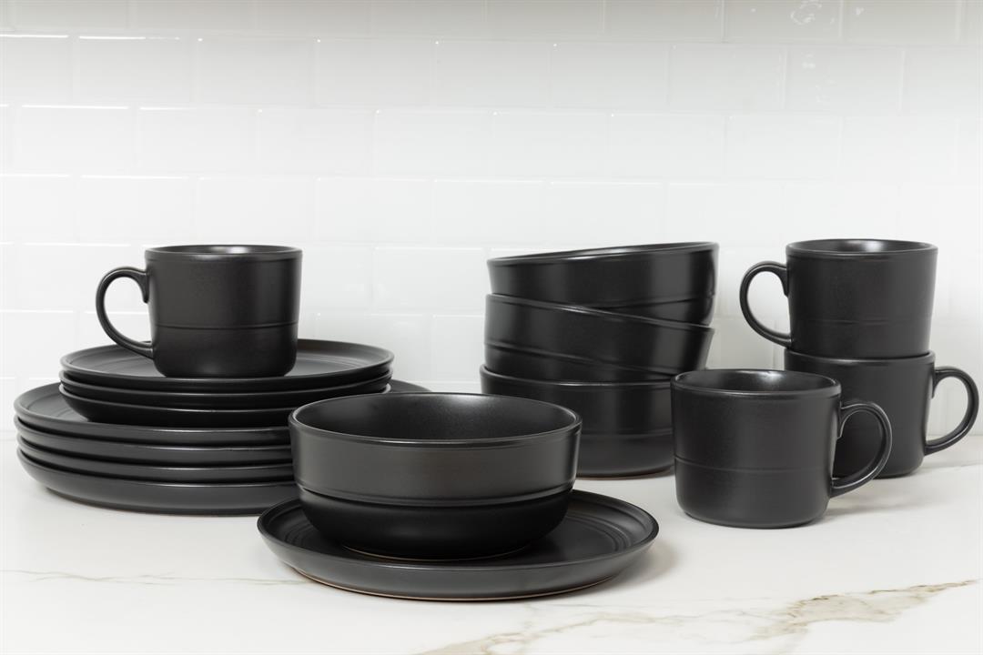 10 Strawberry Street Double Line 16 Piece Dinnerware Set, Matte Black