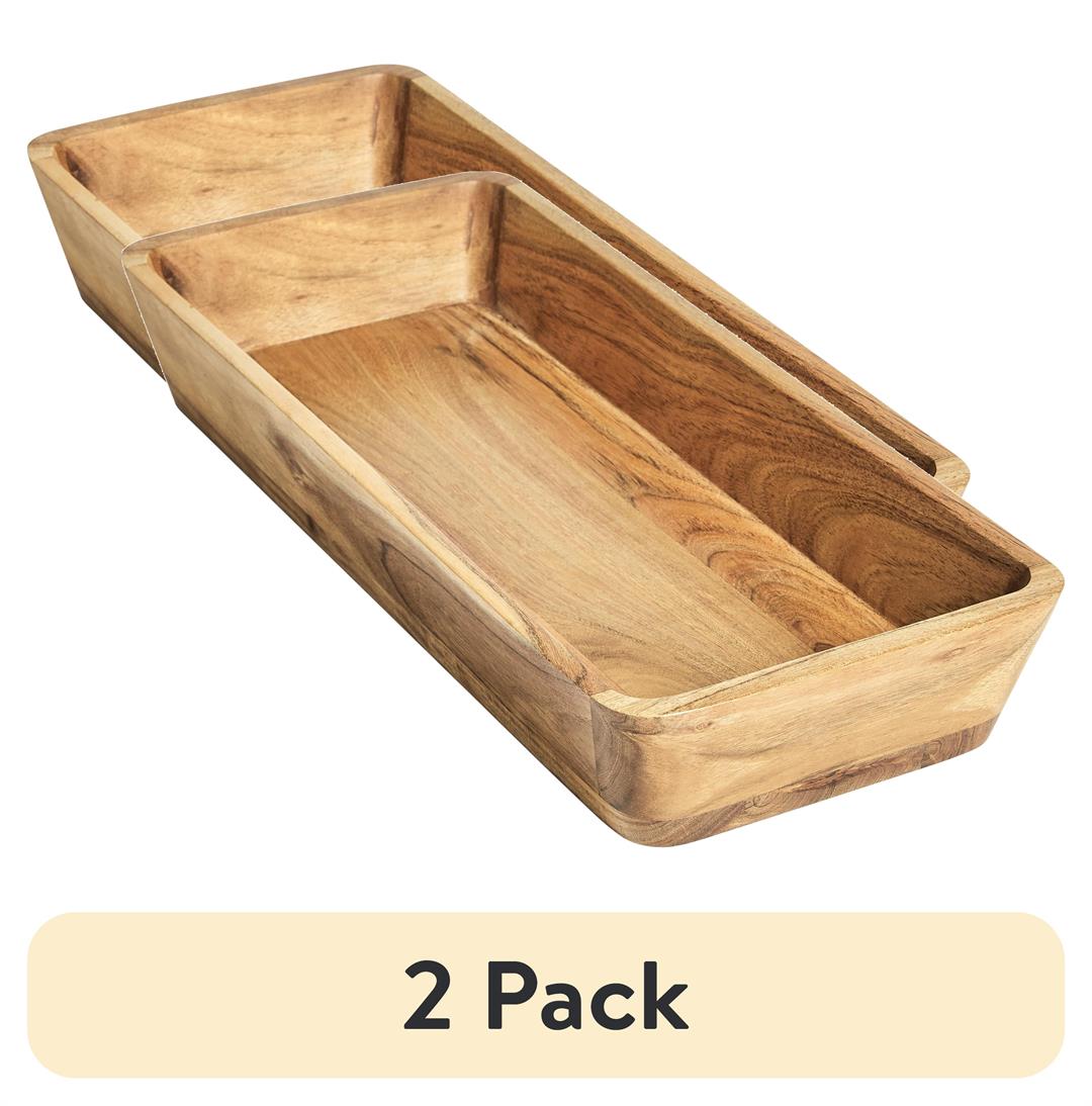 (2 pack) Better Homes & Gardens- Acacia Wood Oval Serving Bowl, Natural Finish Brown