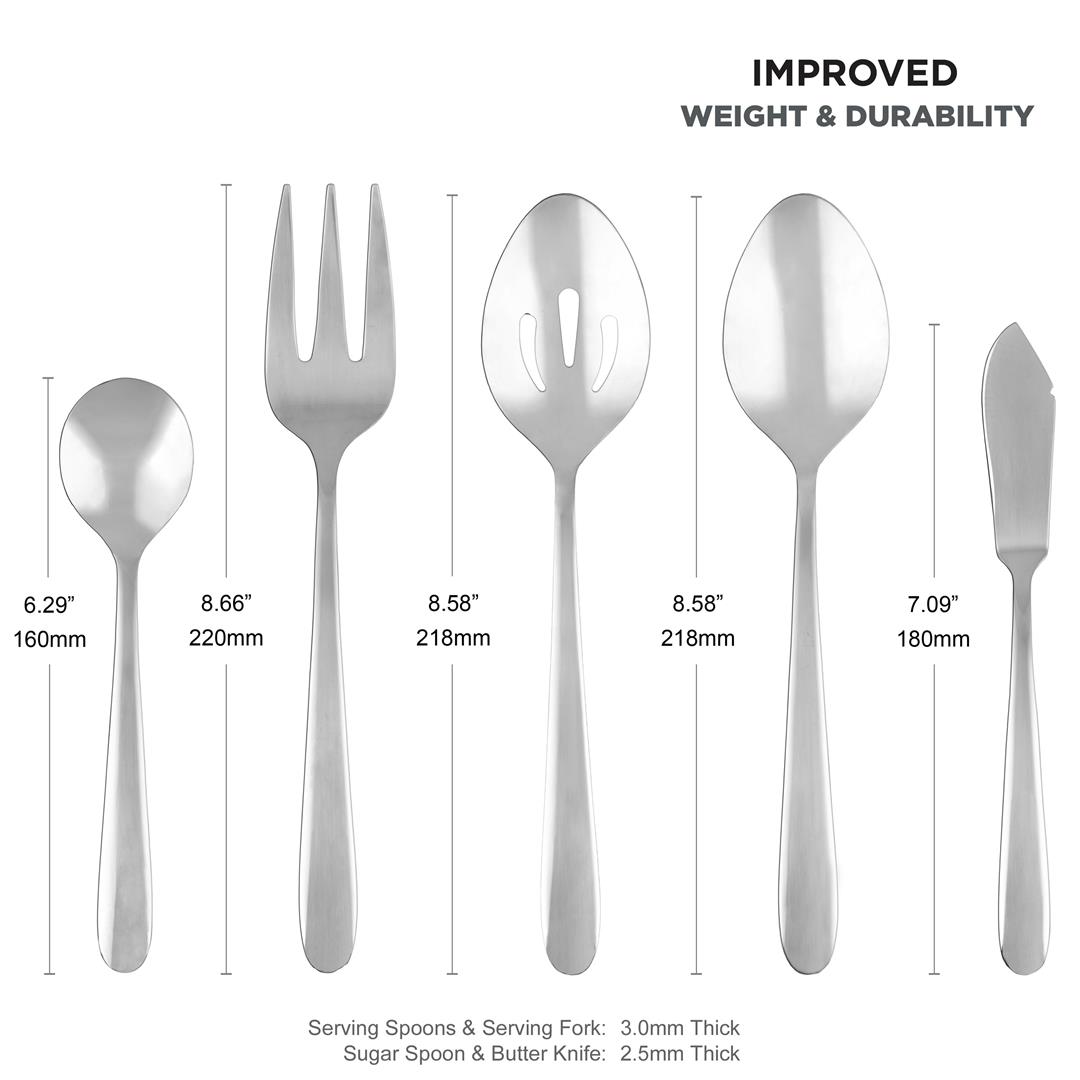 The Cambridge Haledon Mirror 77-Piece Expanded Flatware Set is the ideal choice for larger gatherings, serving up to 12 people. This set includes 24 teaspoons, 12 salad forks, dinner forks, dinner knives, and dinner spoons, plus a 5-piece serving set. Crafted from durable stainless steel, the flatware is both stylish and practical. Dishwasher safe for easy cleanup, this set is perfect for everyday use or special occasions. Enhance your dining experience with the sleek design and functionality of this beautiful collection.