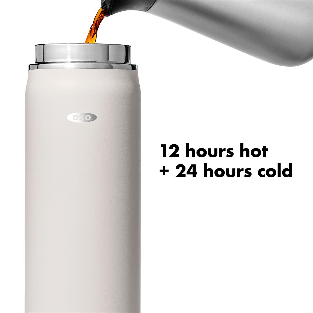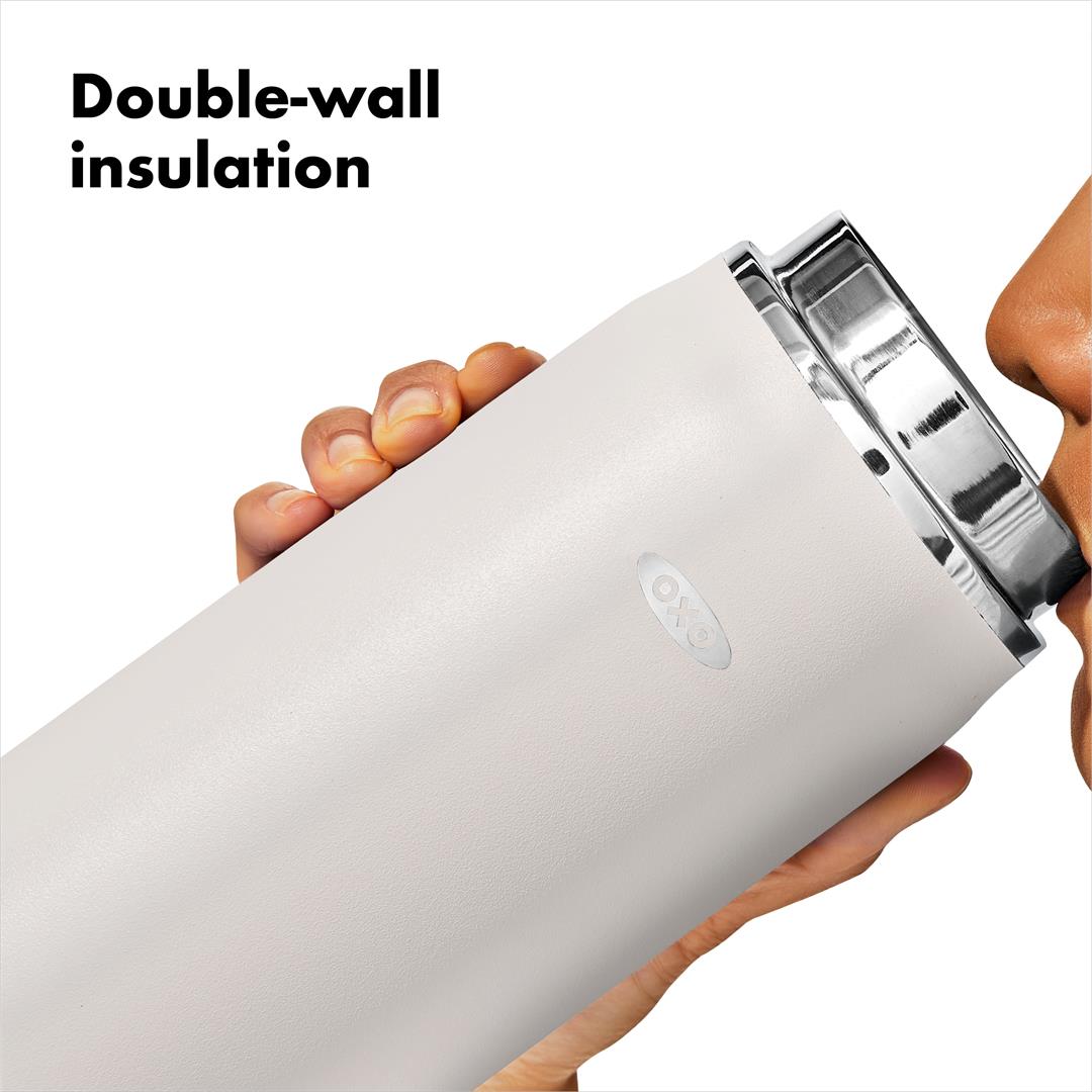 Need to stay hydrated and no time for a refill? Grab the OXO Strive 40 oz/1.2 L Insulated Bottle with Handled Lid and youre good to go for hours. The Insulated Bottles double-wall insulation keeps your cold drinks cold for 24 hours, and your hot drinks hot for 12 hours. The large capacity means you can keep hydrated on that long hike or during back-to-back meetings. Its easy to carry by the handle built into the lid, and comfortable to grip because of the non-slip, sweatproof coating. Leakproof. Dishwasher safe, stainless steel, BPA free. By choosing to reuse, youre doing better for the planet. For over 30 years, weve designed products that make every day better at home. By committing 1% of our annual sales to support environmental nonprofits, were pledging to make every day better for the planet.