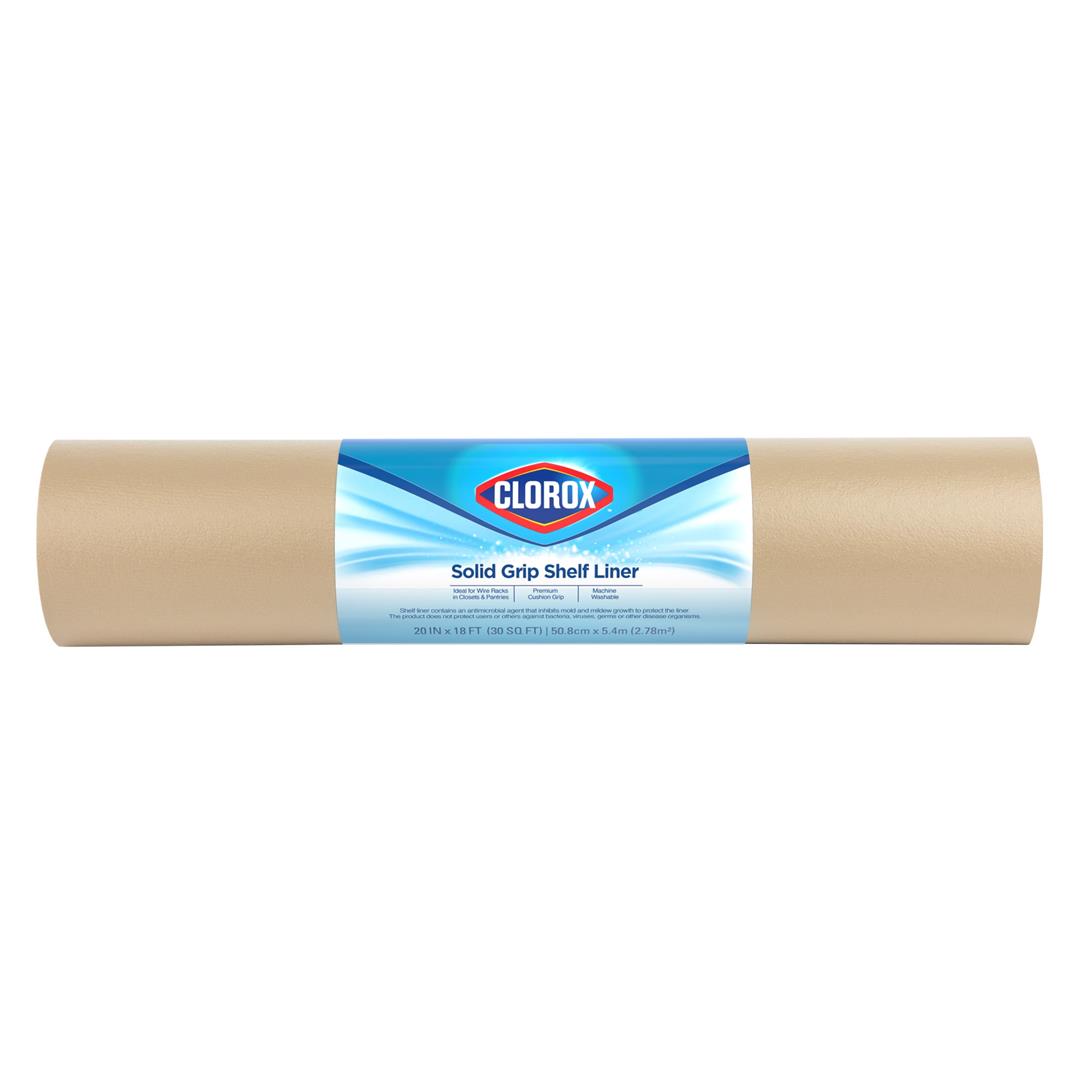 Solid Grip Shelf Liner with Clorox is ideal for those areas in your home that need a little extra protection. The shelf liner is made of a sturdy material that provides a great base on wire shelving preventing crumbs, spills and small objects from falling straight through and onto your surface. Featuring a premium non-adhesive cushion grip top and bottom to keep the liner in place, Solid Grip Shelf Liner is ideal for a variety of areas in your home, including wire racks in closets and pantries. Plus, its easy to wipe up spills and messes, making clean-up a breeze. This shelf liner contains an antimicrobial agent that inhibits mold and mildew growth to protect the shelf liner. The product does not protect users or others against bacteria, viruses, germs or other disease organisms.