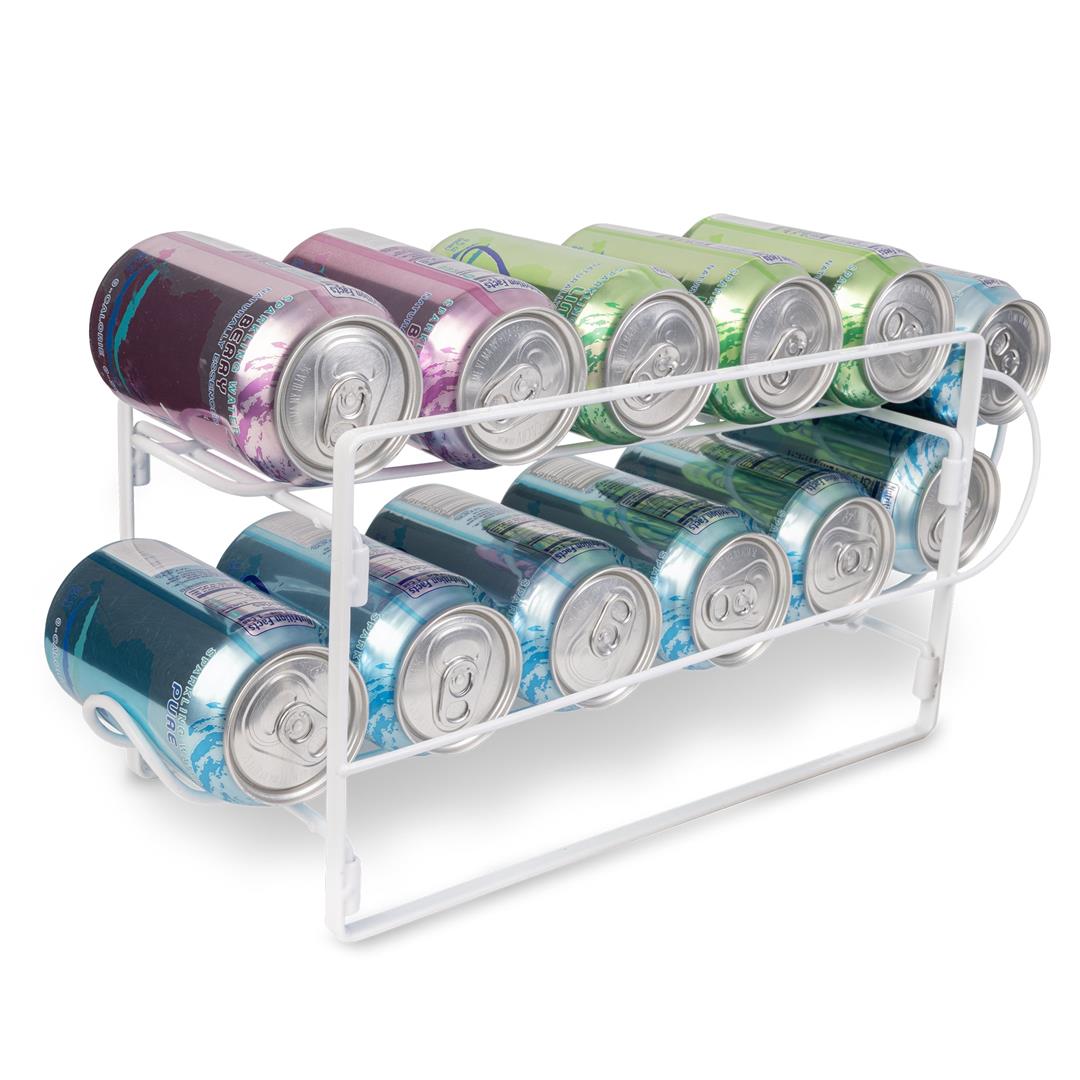 Mainstays 2-Tier Beverage Dispenser, White Kitchen organizer made to fit an assortment of your favorite canned beverages in one place Stores easily in a cupboard, cabinet, in the refrigerator, or on the countertop Makes it easy to keep your favorite drinks cooled and perfectly fizzy Each tier holds 6 cans each for a total of 12 cans Made of steel Rust-resistant finish Measures 6 in W x 16.5 in D x 6.75 in H (15.2 cm W x 41.9 cm D x 17.2 cm)
