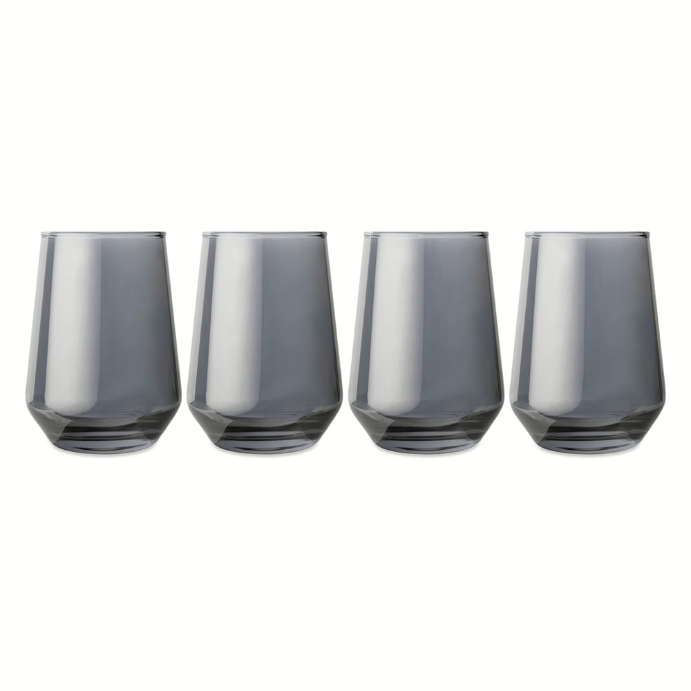 (3 pack) Thyme & Table 13.5 fl oz Smoke Angled Stemless Wine Glasses, Set of 4