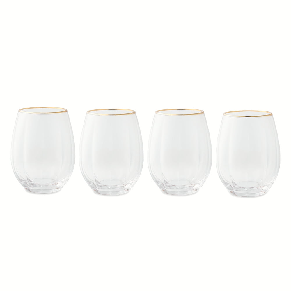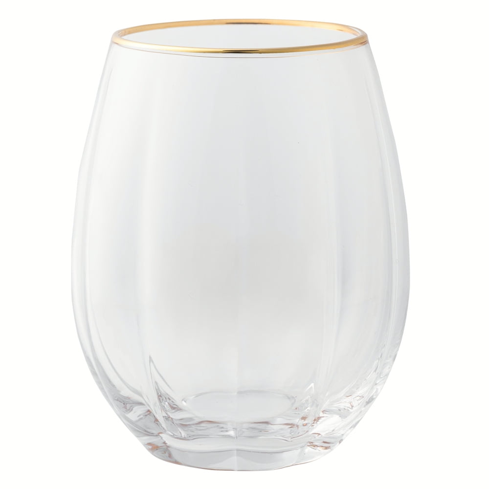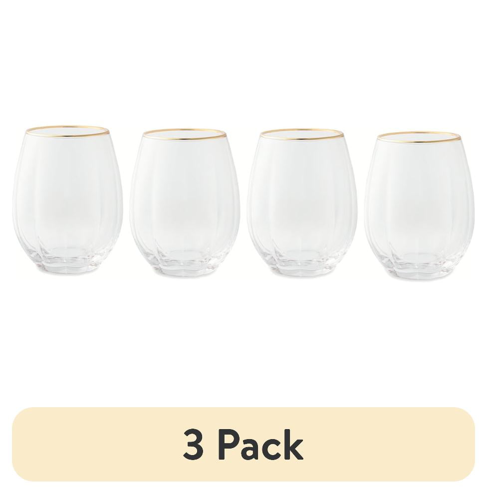 (3 pack) Thyme & Table Scalloped Stemless Wine Glasses with Gold Trim, Set of 4
