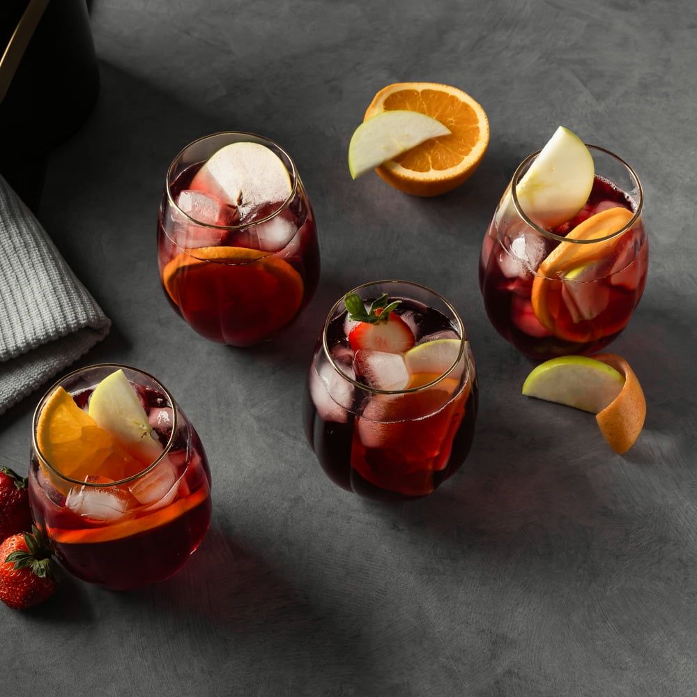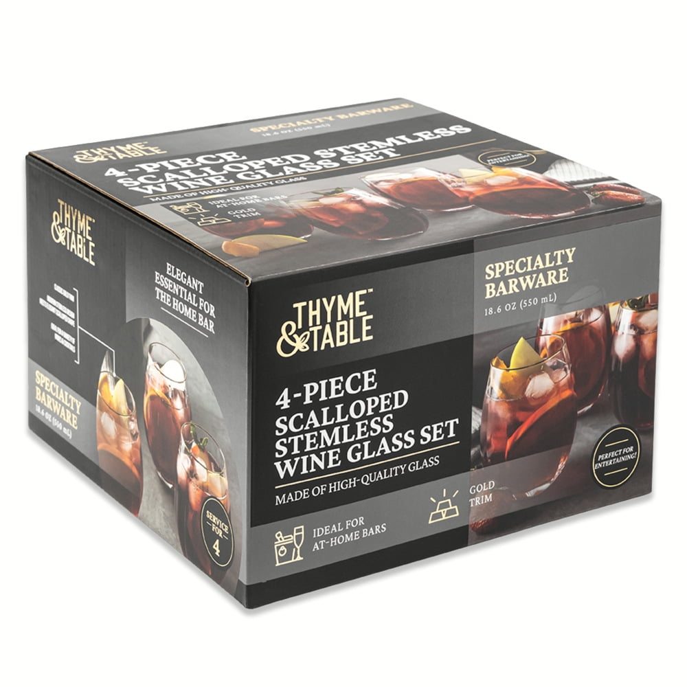 Thyme & Table Scalloped Stemless Wine Glasses with Gold Trim, Set of 4 Made of high-quality glass Ideal for at-home bars Hand wash recommended
