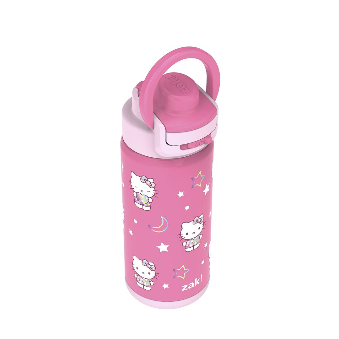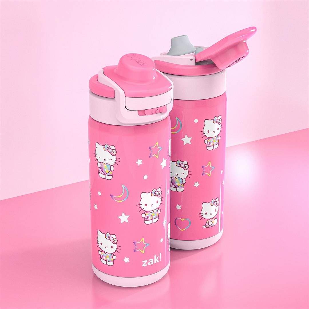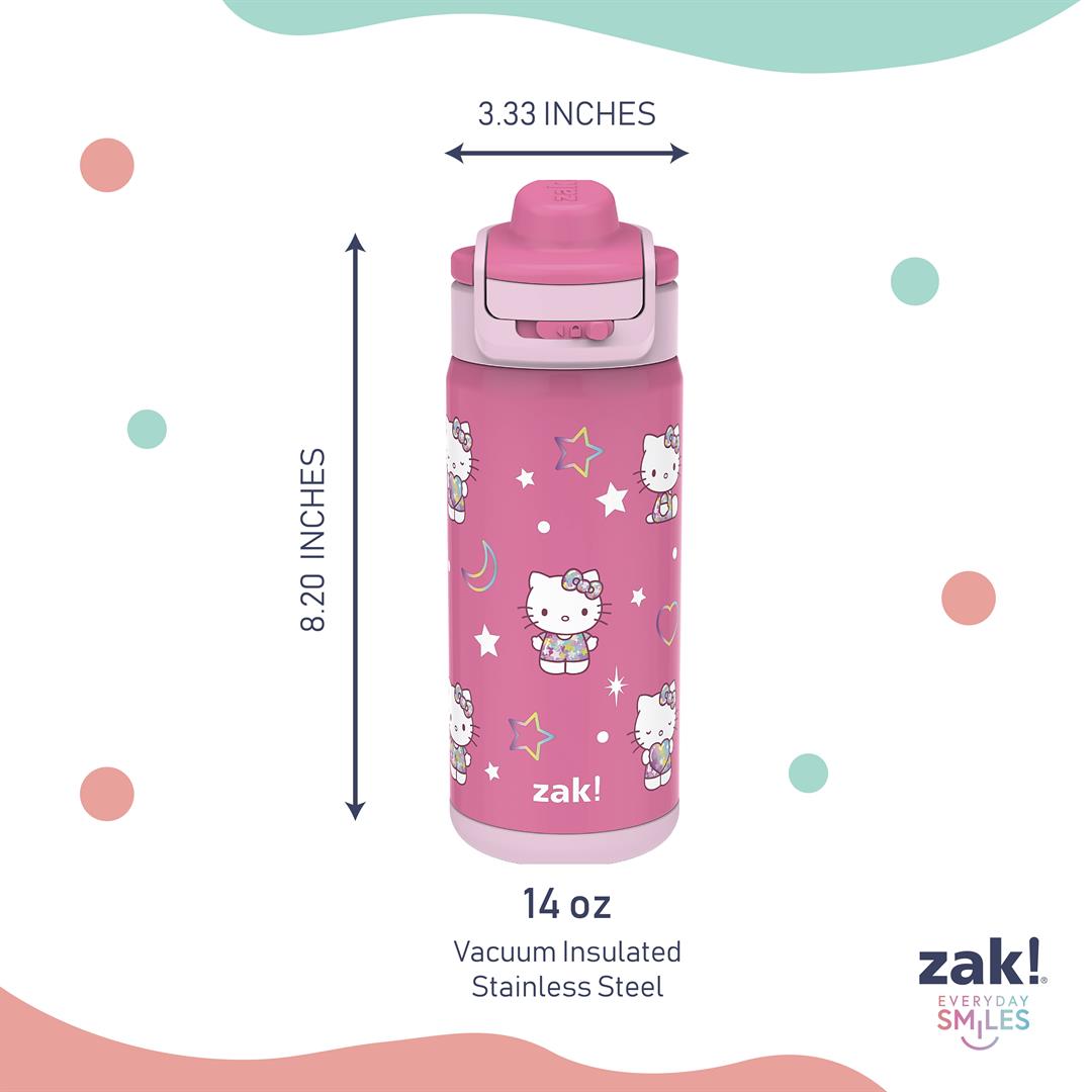 (3 pack) Zak Designs 14oz Hello Kitty Kids Straw Water Bottle, Stainless Steel Vacuum Insulated Lincoln Bottle with Easy-Open Locking Spout Cover for Travel, Built in Carry Handle
