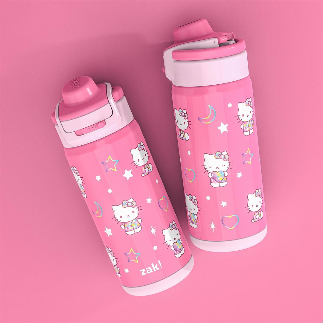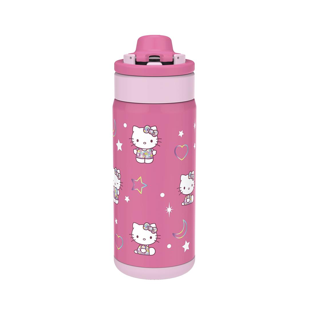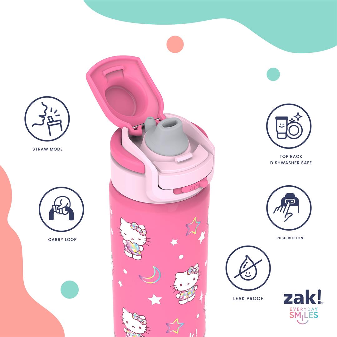 (3 pack) Zak Designs 14oz Hello Kitty Kids Straw Water Bottle, Stainless Steel Vacuum Insulated Lincoln Bottle with Easy-Open Locking Spout Cover for Travel, Built in Carry Handle