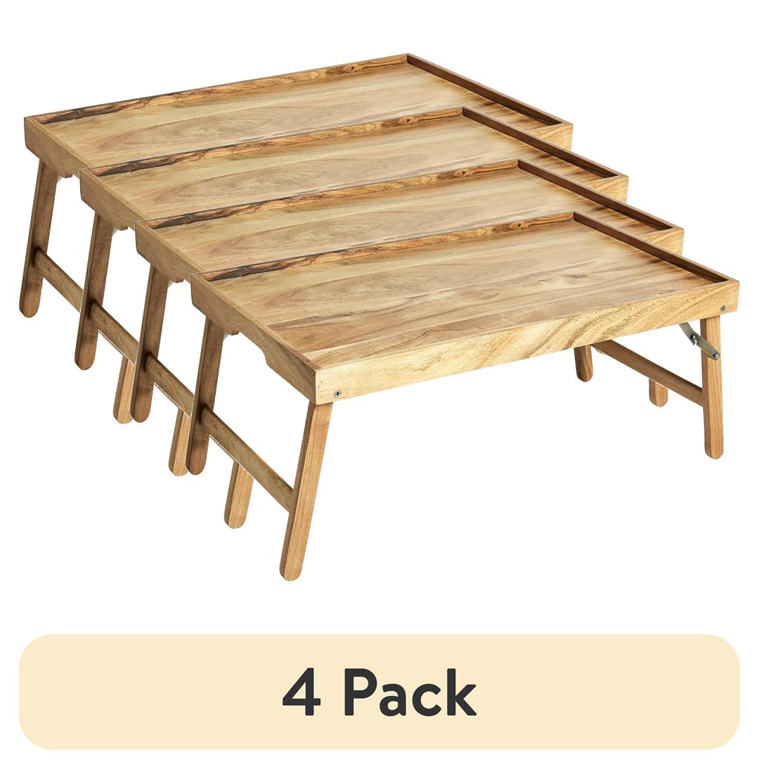 (4 pack) Better Homes & Gardens Acacia Wood Rectangular Bed Tray with Stand in Natural Finish Brown, One Size