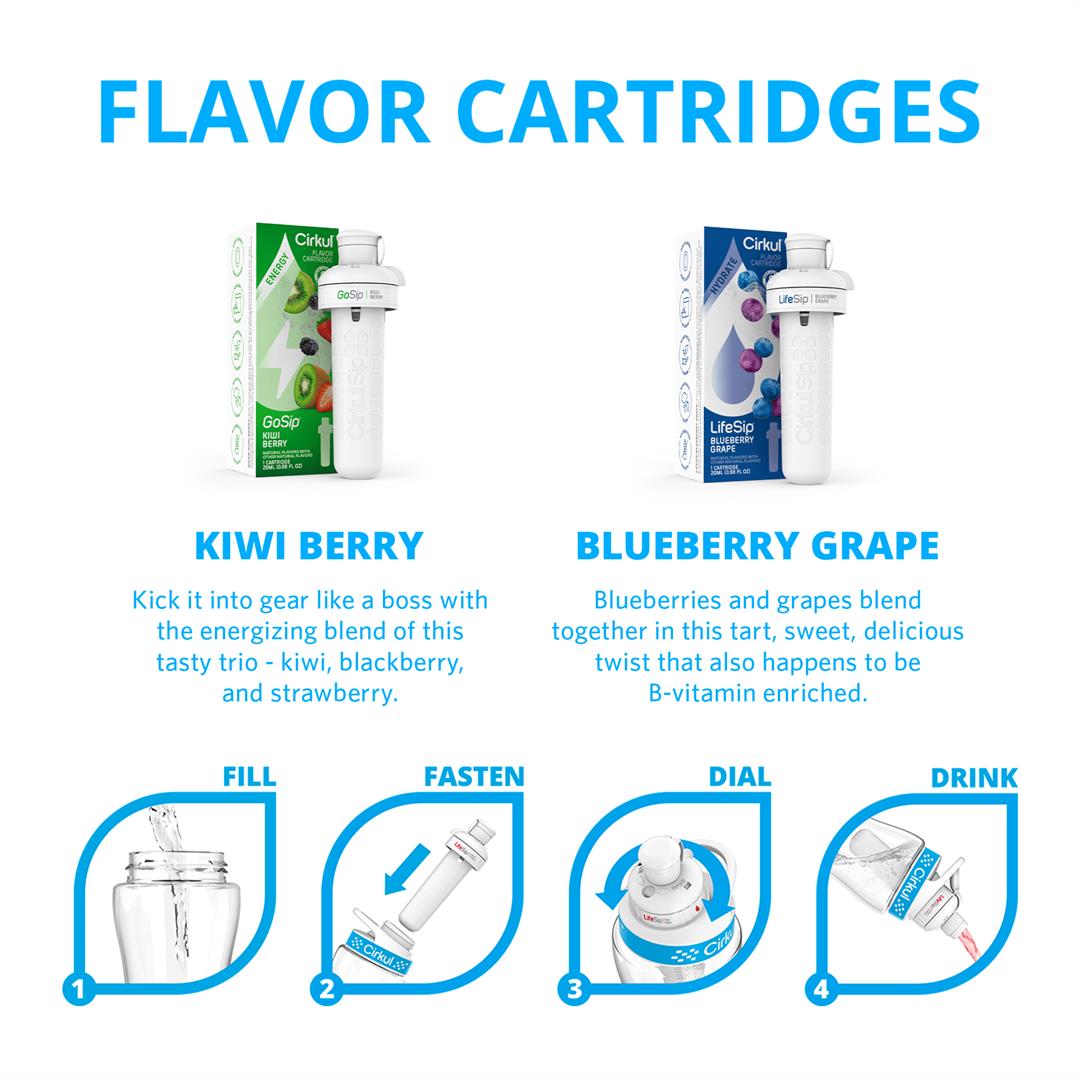 COMPLETE STARTER KIT: Innovative water bottle and cartridge system that makes drinking water more delicious, fun, and personalized. CUSTOMIZABLE FLAVOR DIAL: Cirkul’s Flavor Dial technology gives you full control of your flavor; dial up or down as you please. DELICIOUS FLAVORS: Cirkul has beverage options for everyone. Increase your kids water intake with flavors they love, and parents feel good about. ZERO CALORIES AND NO SUGAR: All Cirkul water bottle cartridges are zero calories and have no sugar, no artificial flavors, and no artificial colors. MULTIPLE REFILLS ON THE GO: Each Cirkul cartridge contains an equivalent amount of flavor to six 20oz. conventional bottled beverages. Results will vary based on dial setting. HAND WASH: We recommend hand washing your Stainless Steel Cirkul Bottle with warm, soapy water to maintain its quality. Good news: the lids are top-rack dishwasher safe!