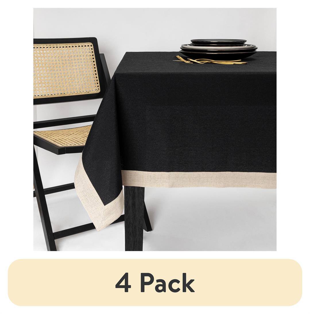 (4 pack) Thyme & Table 84″ Rectangle Tablecloth, Black with Gold Border