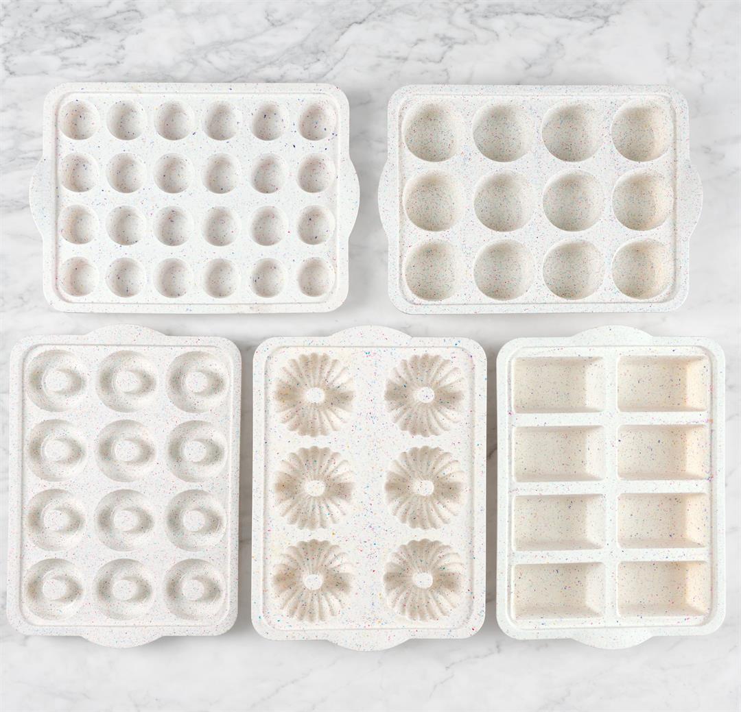 (4 pack) Trudeau Silicone 8 Count Mini Bread Loaf, or Mini Cake Pan, Multicolor Confetti, Dishwasher Safe