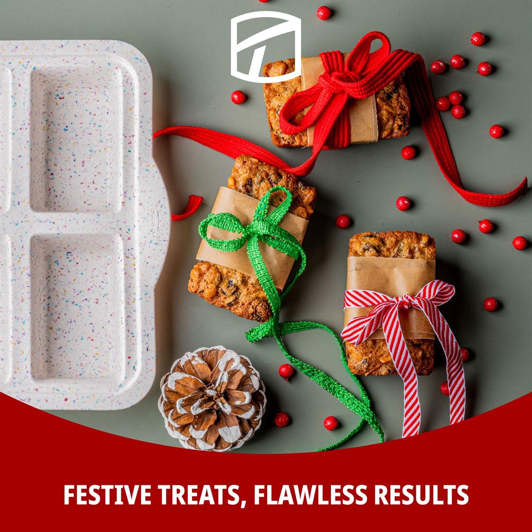 Fall & Holiday Baking & Gifting Ideas: Mini loaf size perfect for festive treats like cornbread, pumpkin bread, gingerbread loaves, funfetti mini cakes, fudge, and peanut butter cookie bars! Fall & Holiday Baking & Gifting Ideas: Mini loaf size perfect for festive treats like cornbread, pumpkin bread, gingerbread loaves, funfetti mini cakes, fudge, and peanut butter cookie bars! Silicone pan made form BPA-free materials Integrated steel structure for secure handling Nonstick design cooks evenly with easy release Freezer-safe, microwave-safe, dishwasher-safe and oven-safe up to 425 degrees Cavity capacity: 3.94″ x 2.36″ x 1.54″ / 6.7 oz