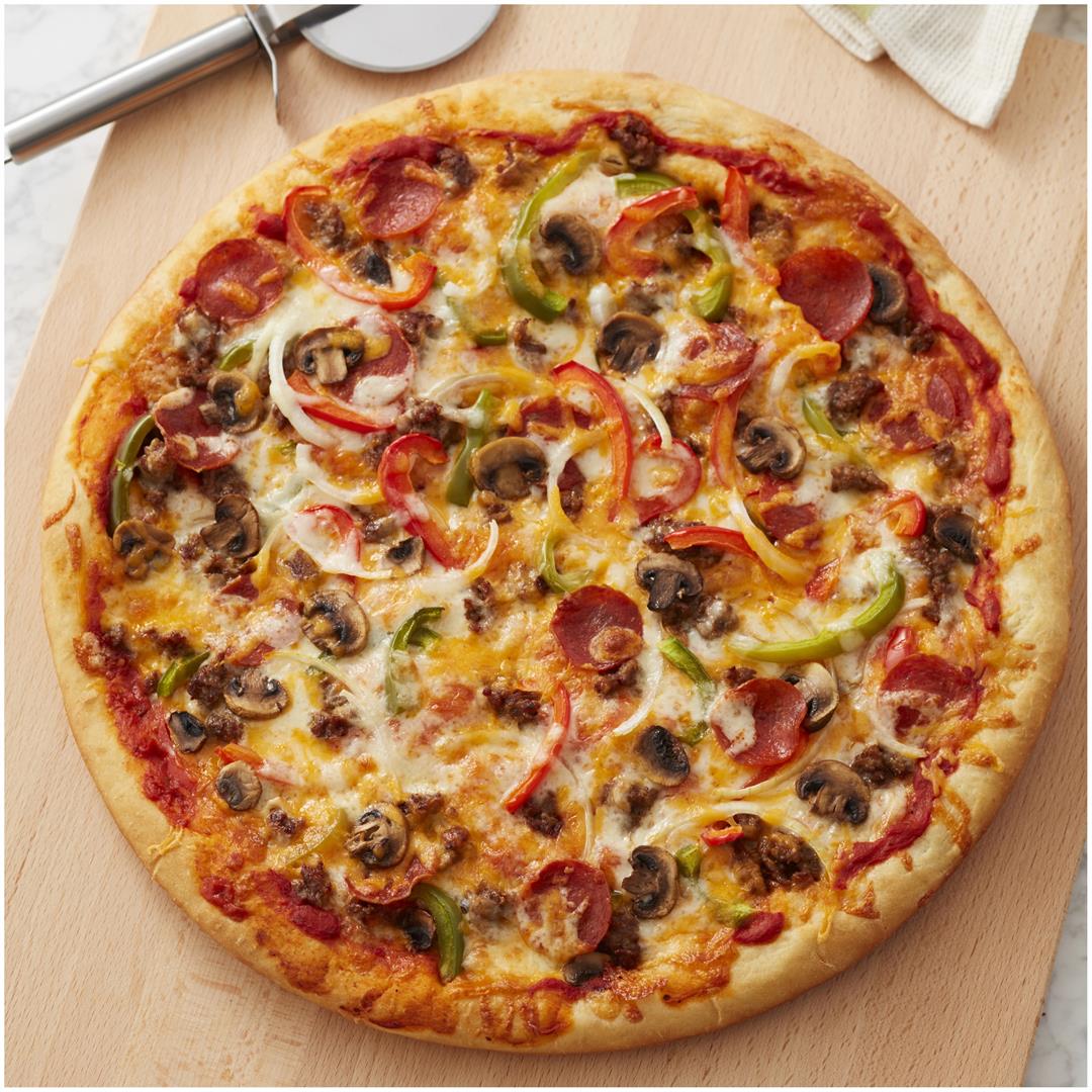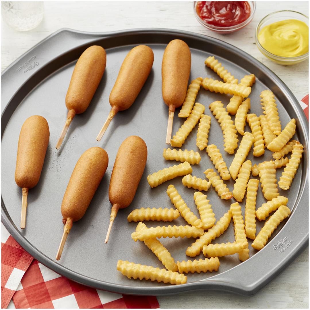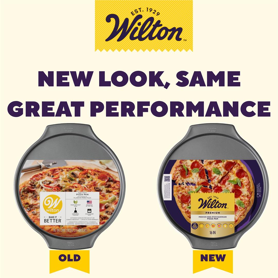 Create delicious crispy pizzas at home with the Wilton Premium 16″ Pizza Pan. Perfect for baking homemade, frozen, or even dessert pizzas, this 16-nch round pizza pan delivers dependable, even heating for a perfectly golden crust every time. Crafted from heavyweight steel, it resists warping and provides long-lasting performance. The ergonomic handles offer a secure and comfortable grip, making it easy to rotate your pizza for even baking. With its scratch-resistant non-stick coating, your pizzas release effortlessly, making cleanup a breeze. Ideal for family night pizza nights, game day snacks, or creative dessert pizzas, this versatile pan is a must-have for any baking enthusiast. It’s also great for appetizers, flatbreads, and more. Scratch resistant, & oven safe up to 450 degrees Fahrenheit. Pizza pan size is 16 inches in diameter. Some foods may stain the metal, but it will not affect the performance. Dishwasher safe. . Includes a 10-Year Limited Warranty. For terms & conditions, please visit Wilton.com. At Wilton, we are champions of adding sparkle and fun to any occasion. From an extensive array of baking and decorating products to skill-building classes, it’s our treat to help you create sweeter moments. Designed to last for year of pizza perfection, it includes a Forget the takeout! Enjoy piping hot pizza straight from your own oven!
