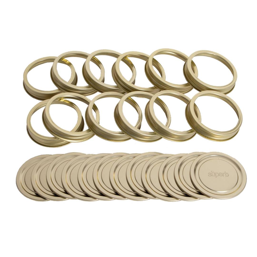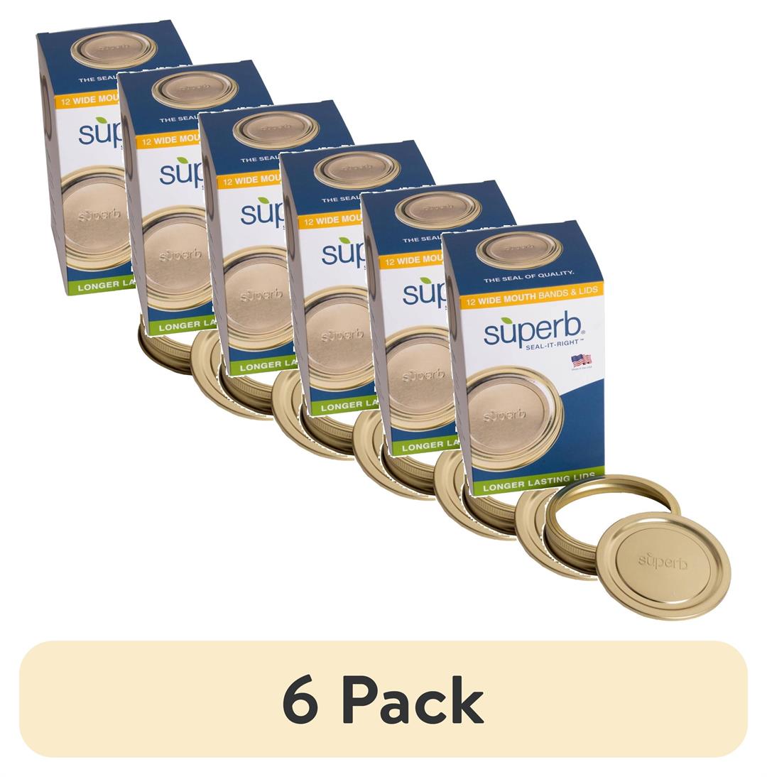 (6 pack) Superb Wide Mouth Canning Lids and Rings (12 Count) Mason Jar Metal Lids and Bands for Home Canning and Food Preservation