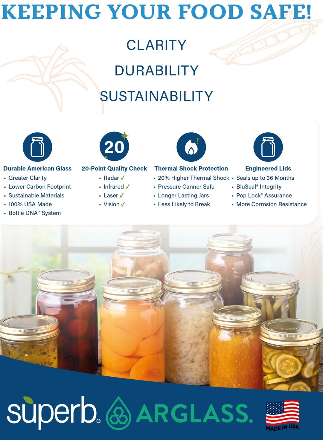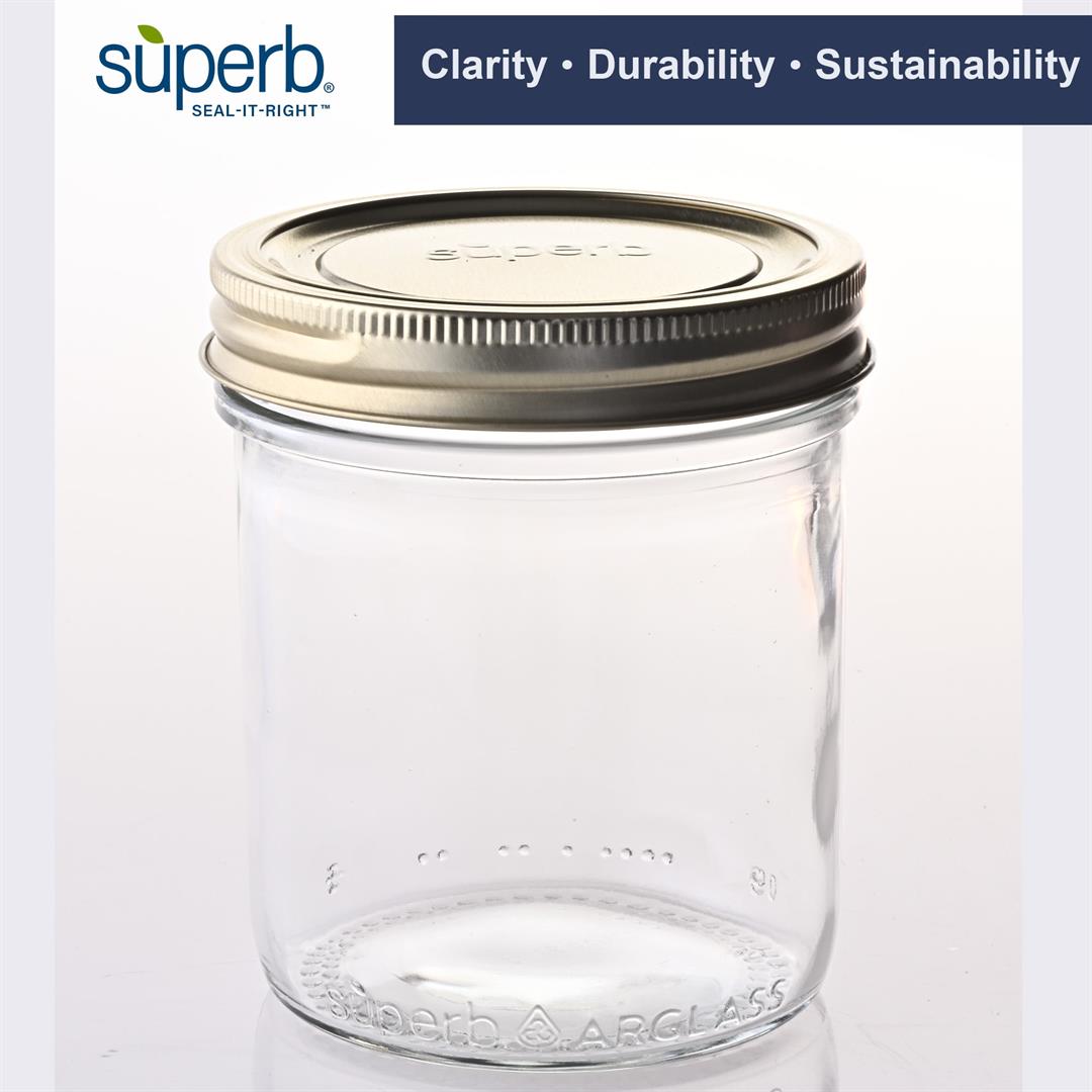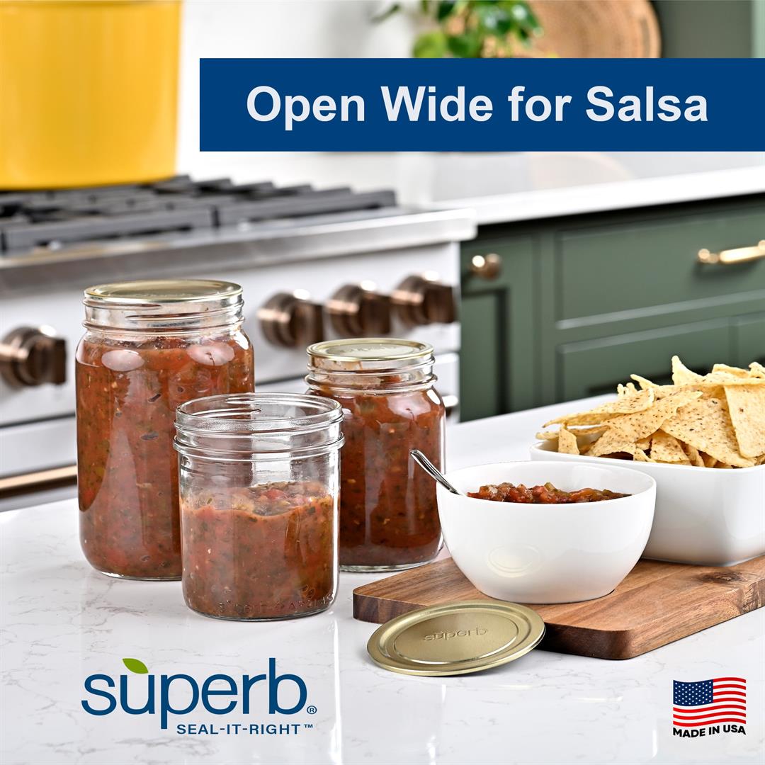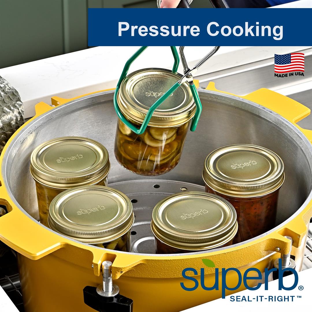 Superb Canning Lids and Bands, Mason Jar Wide Mouth Metal Lid Toppers and Bands Fit Ball and Kerr Jars, 3.25 inch, 12 Count. High-quality engineered lids seal up to 36 months with proprietary BluSeal Integrity with more vacuum power in sealing and prevents buckling. Quin Tek Protection has Five layers of corrosion protection. “Pop”Lok Assurance-Distinctive “popping’ sound ensures seal. Ideal for home canners, gardeners, and DIYers and crafters. Safe for high pressure canning.